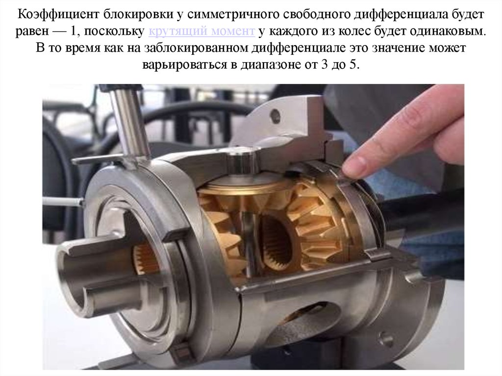А на умеренном бездорожье эффективнее самоблокирующиеся дифференциалы с коэффициентом блокировки (как отношение большего момента к меньшему) около 6.