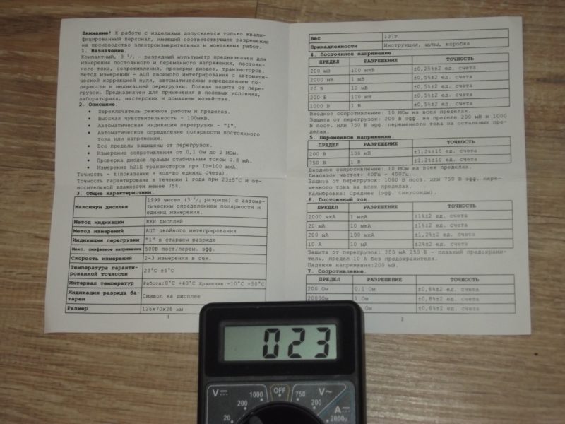Несмотря на низкую цену, прибор может многое. В инструкции к мультиметру указано, что он измеряет ряд важных показателей: