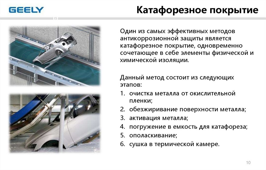 Гальванический способ на данный момент является одним из самых распространенных в виду своей дешевизны и доступности. На производстве будущий кузов автомобиля опускают в специальный электролит, содержащий цинк, и пропускают через него ток. На металле кузова образуется защитная пленка, которая позволяет производителю гарантировать защиту от коррозии в районе 10-12 лет.