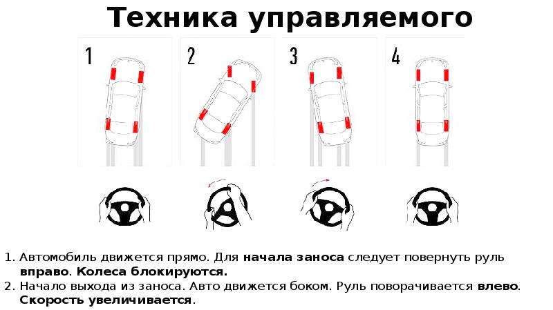 - Параллельно следует вывернуть роль в направлении совершаемого заноса.