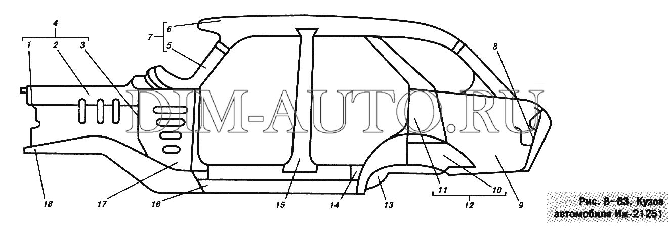Рис.44. Компоненты каркаса кузова ВАЗ-2110, ВАЗ-21102