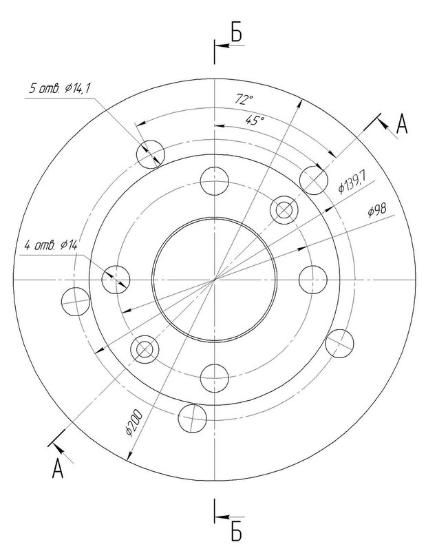 - B то же самое, но для правого фланца ступицы – левый и правый фланцы часто имеют разные диаметры.