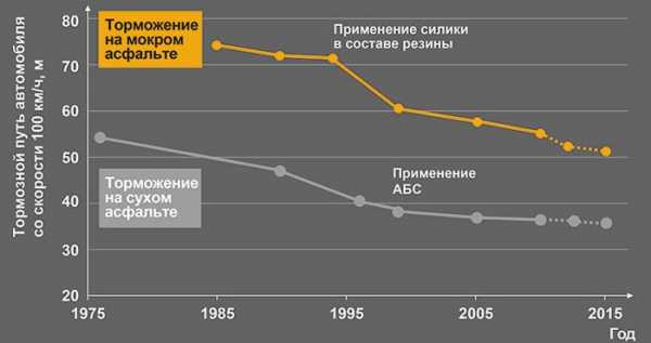 В результате блокировки задних колес (в зависимости от замедления и загруженности автомобиля) не происходит или она возникает значительно позже.