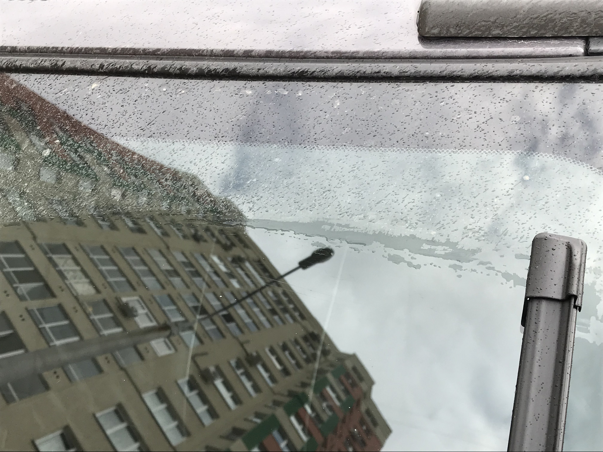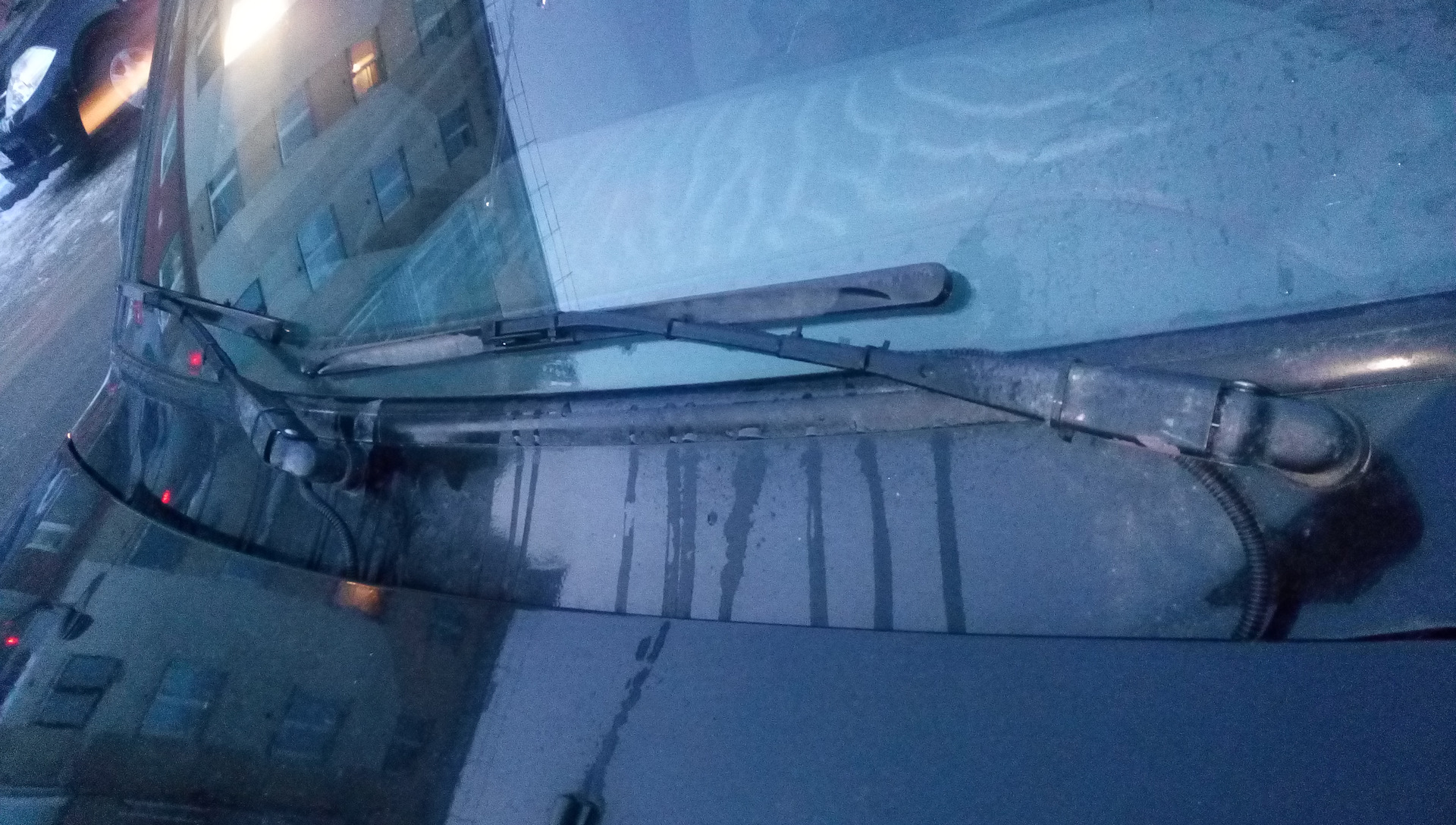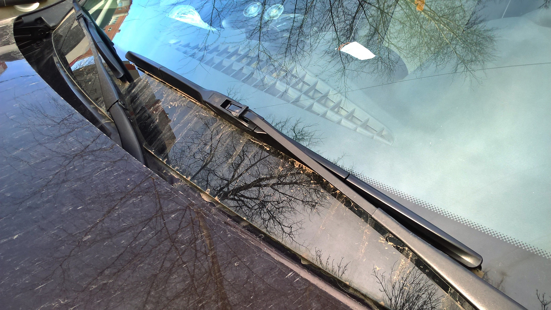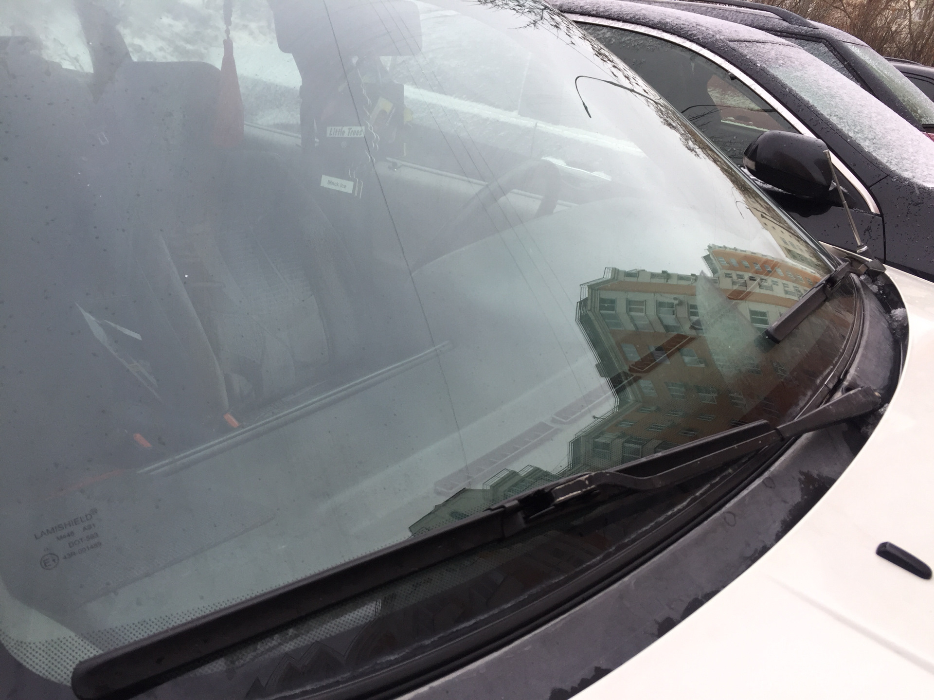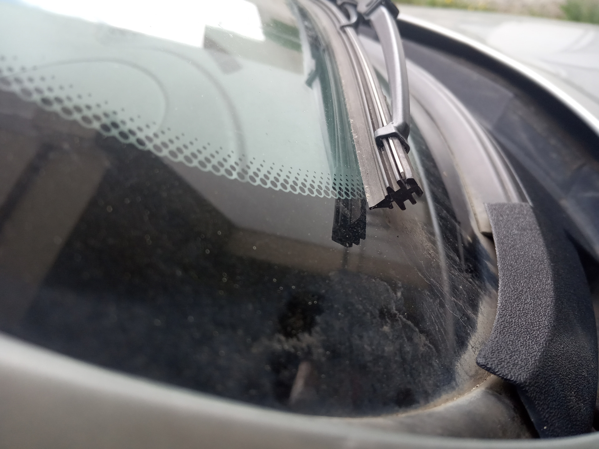 В парковочной зоне резинка дворников слишком наклонена