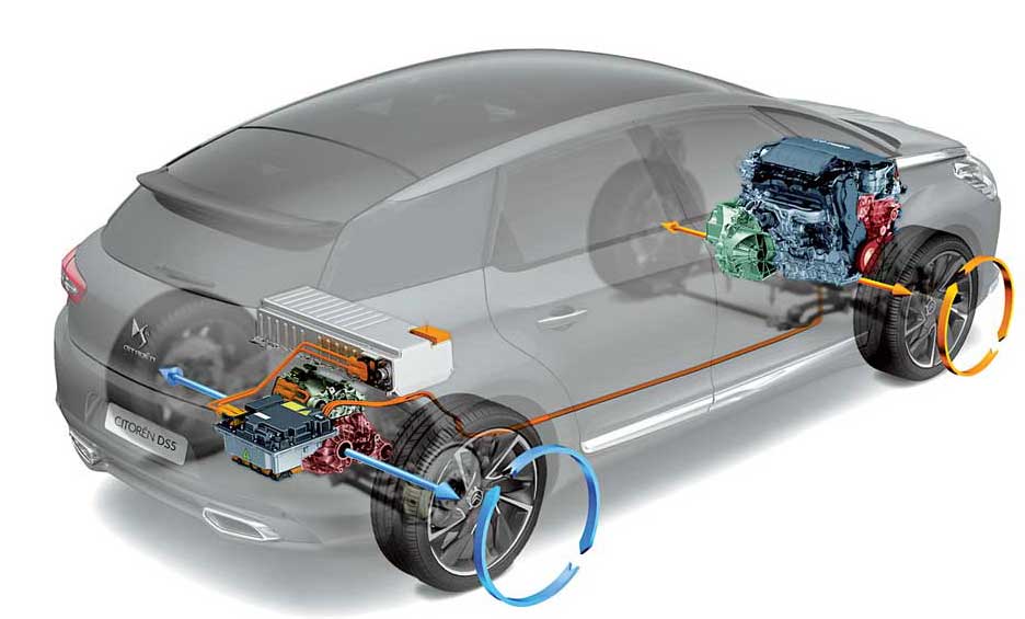 Гибридный электромобиль имеет ДВС и топливный бак традиционных ТС, а также аккумуляторную батарею и электродвигатель. Обычно он работает путём сбора и повторного использования энергии двигателя, работающего на бензине, который в противном случае был бы бесполезным в стандартных ТС.