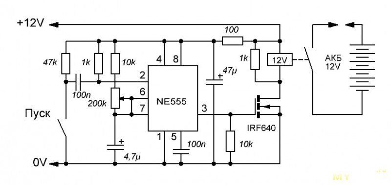 - По окончании отсчета выдается команда на микросхему управления тиристором (симистором). Процесс повторяется на каждом периоде сетевого напряжения для использования только положительной половины периода. Это усовершенствование позволяет избежать режима магнитного насыщения железа.