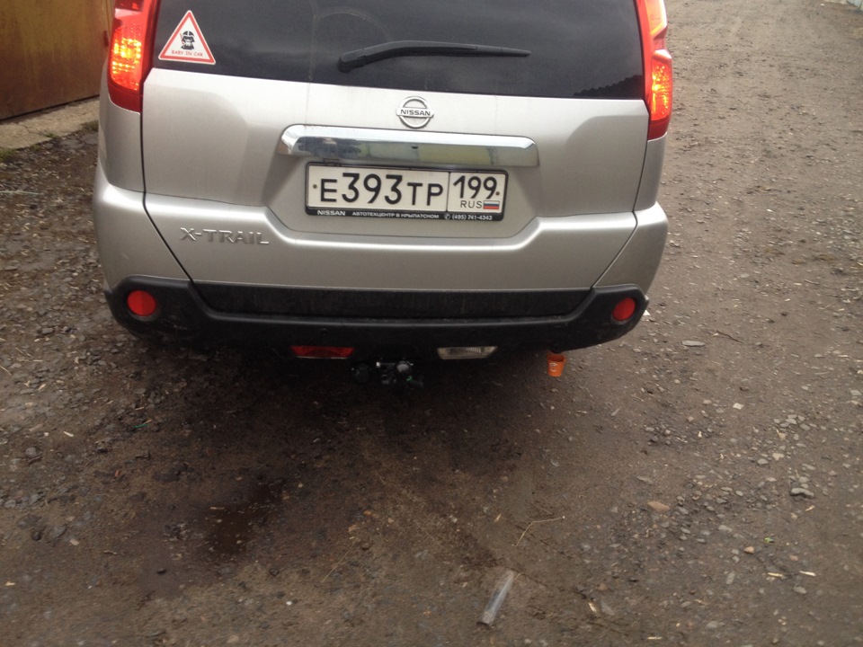 Установленный фаркоп Ниссан Х-ТрейлМожно сказать, что установка фаркопа на Ниссан Х-Трейл делает столкновение с задней частью автомобиля менее безопасным. Фаркоп становится своеобразным тараном благодаря жесткому креплению. И в общем это совсем не плюс поскольку повышается возможная травматичность и снижается общая безопасность установленная краш-тестами.