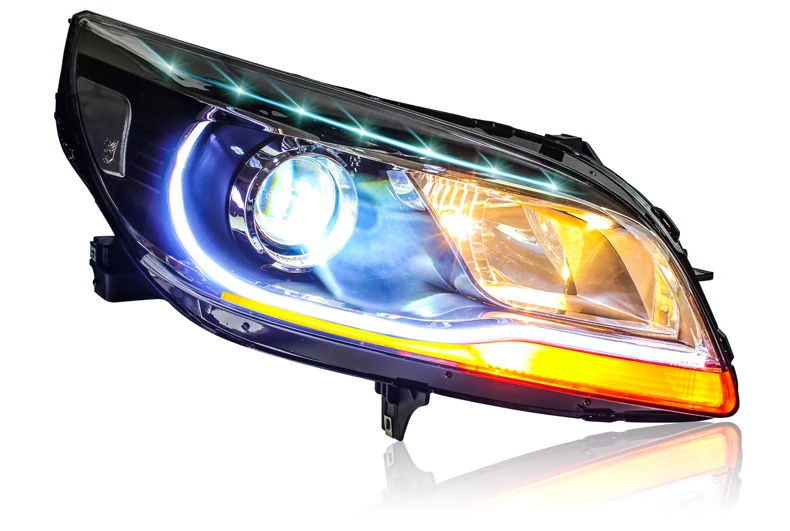 Прожекторные фары — это мощные фары, которые изначально были доступны только в автомобилях класса люкс. Они могут использовать чрезвычайно яркие высокоинтенсивные газоразрядные (HID) и светодиодные (LED) лампы, которые было бы небезопасно использовать с традиционными рефлекторными фарами. [f] На рис. 13 показан пример корпуса прожекторной фары.