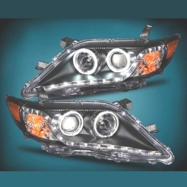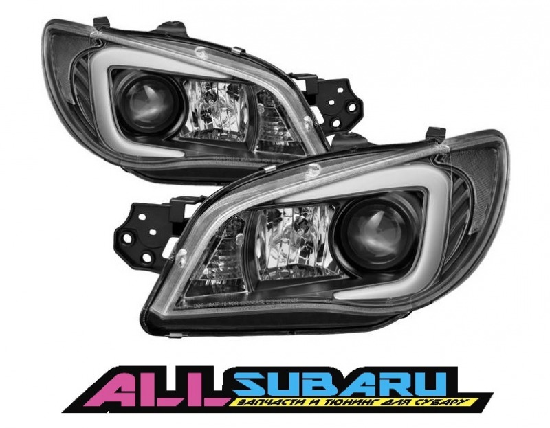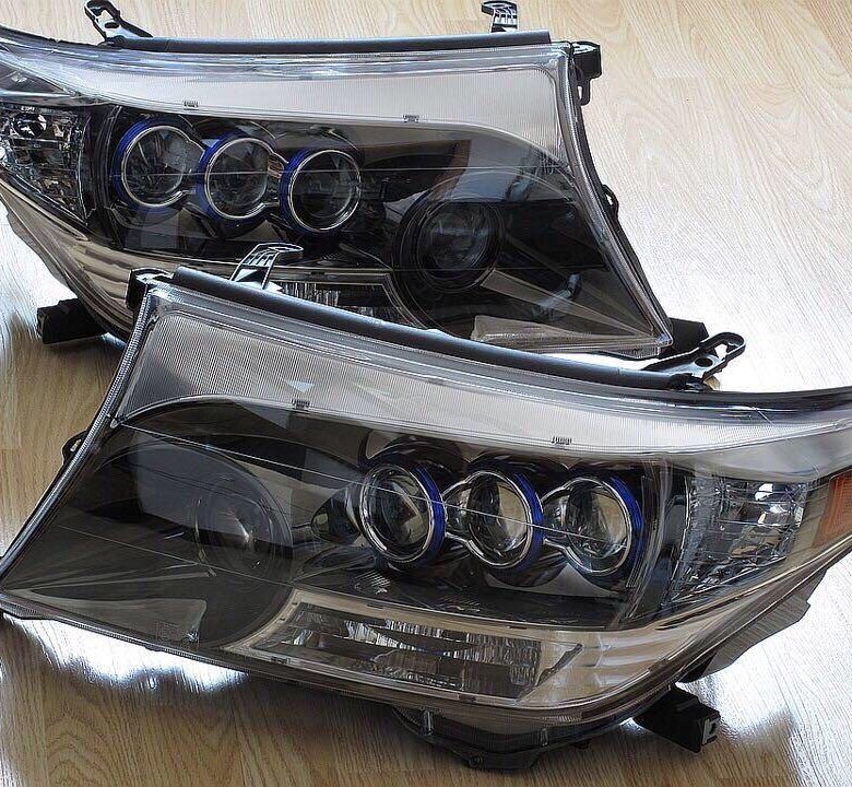 Передние тюнинг-фары с черным корпусом на основе оригинальных для Приора, Приора 2
