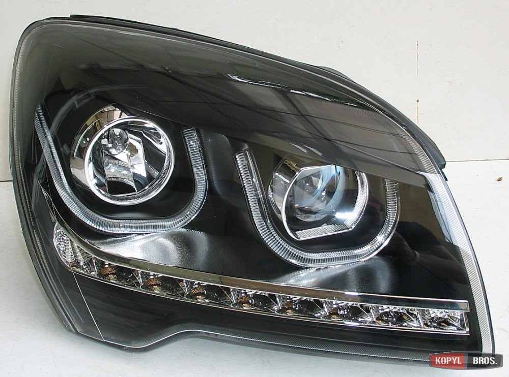 Тюнинг фары с неоновыми ДХО и линзой, тёмный хром на Нива 21213, 21214, 2131, ВАЗ 2101, 2102