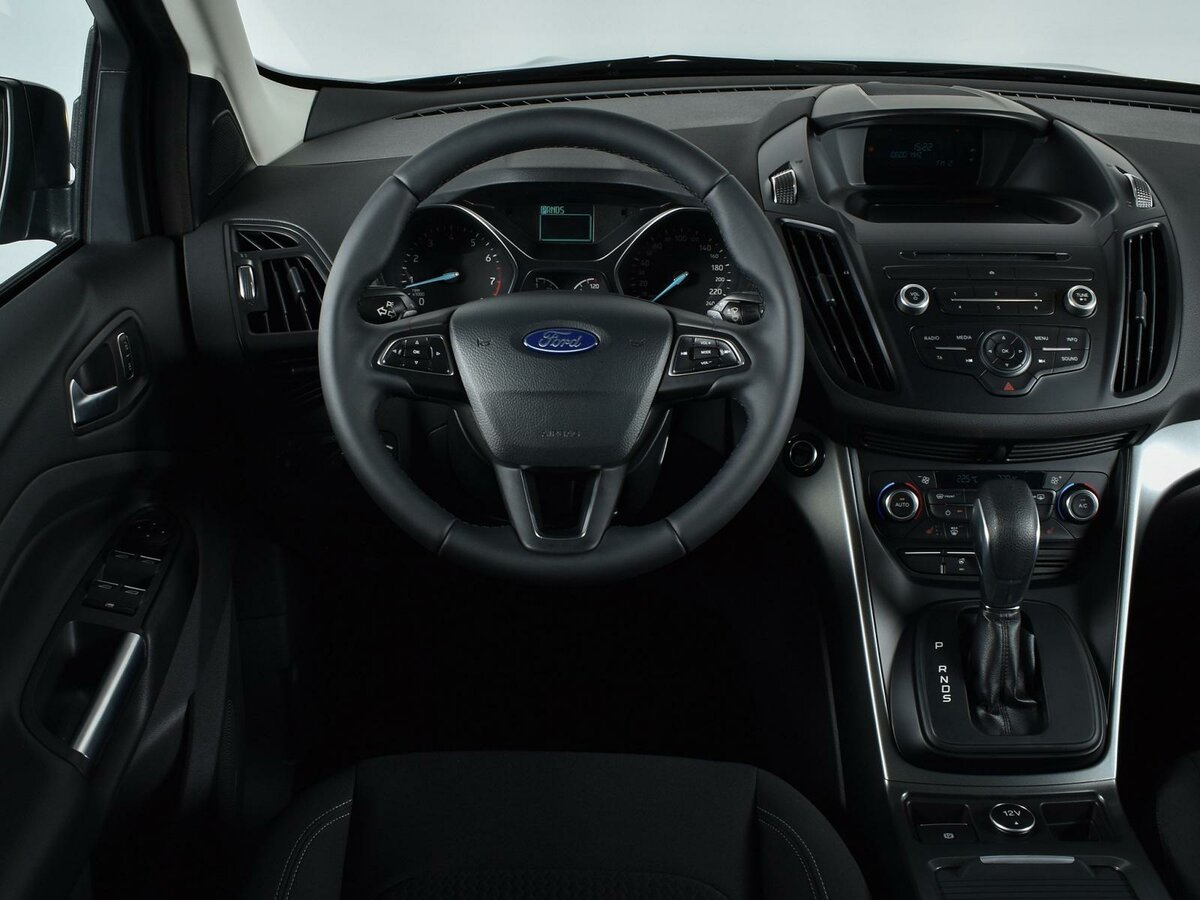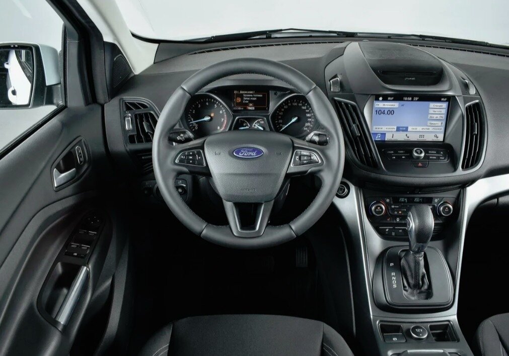 Другая форма наклона, более приятная для водителя. «Рабочее место» словно создано под спортивный стиль езды, хотя моторы об этом «умалчивают». Классный трёх спицевый руль, с клыка образным строением, наделен массой клавиш, причём даже в базовой версии. «Инструментарий» приборной панели Форд Куга вмещает в себя в двух «колодцах», а также небольшом бортовом компьютере.