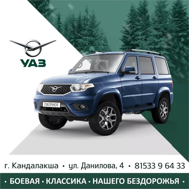 УАЗ Патриот справляется даже с самыми экстремальными условиями движения. Одним словом — король бездорожья. УАЗ Патриот создан для комфортных путешествий всей семьей. Просторный салон, современное оборудование, отличная плавность хода и вместительный багажник сделают любую поездку приятной.