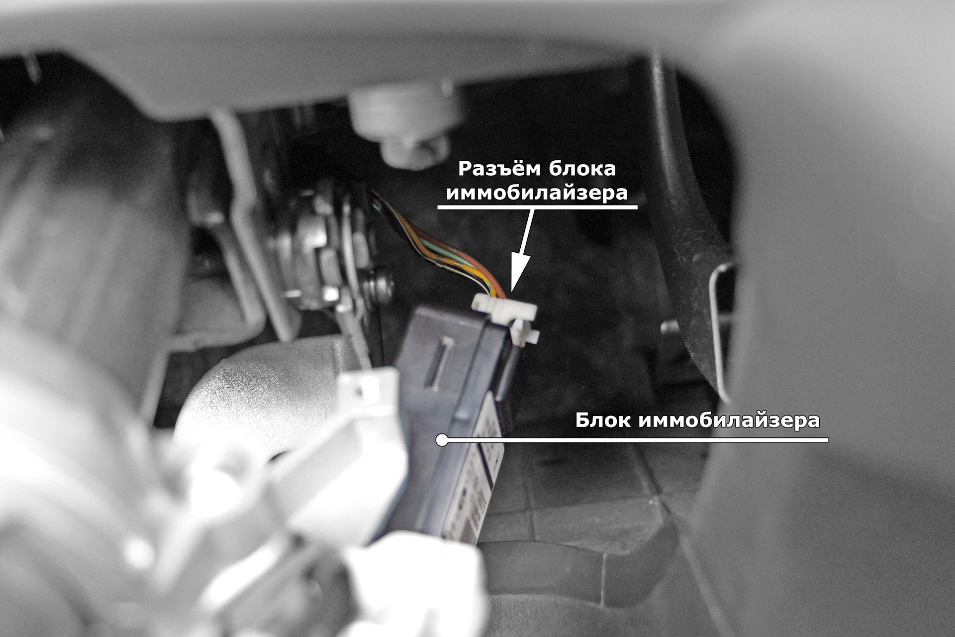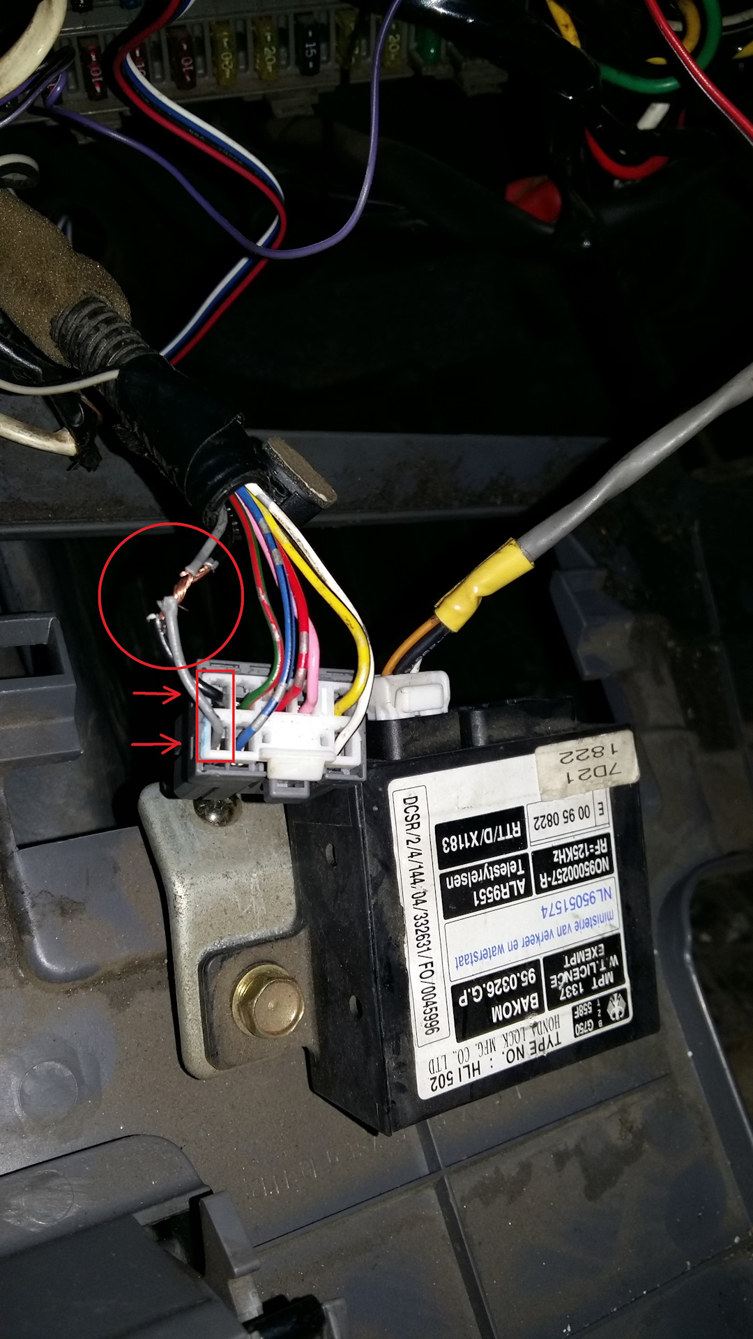 Некоторые из них удерживаются стяжками, а другие просто падают на пол, как показано на фото ниже! Тогда это простая задача — открыть корпус и соединить точки иммобилайзера. Автомобиль завелся…