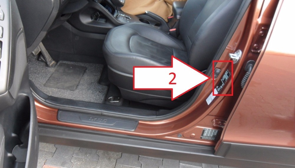 - В самой нижней части арки, у двери водителя. Его можно прочитать, если широко открыть дверь водительского места.