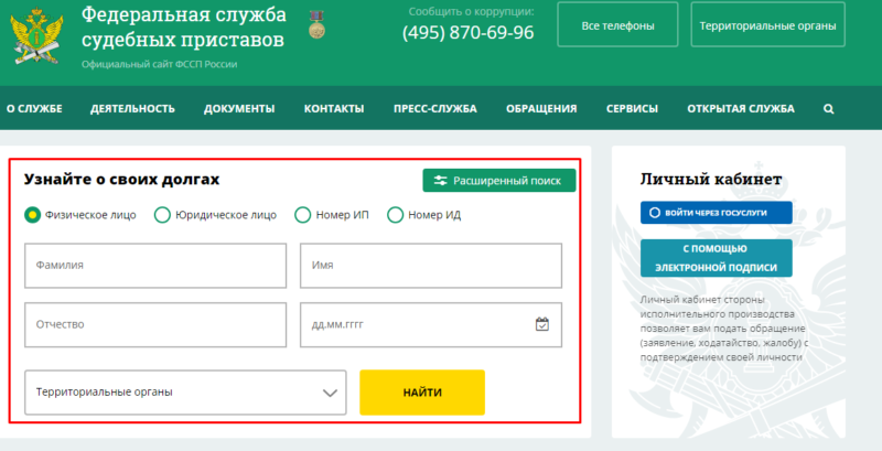 На сайте судебных приставов