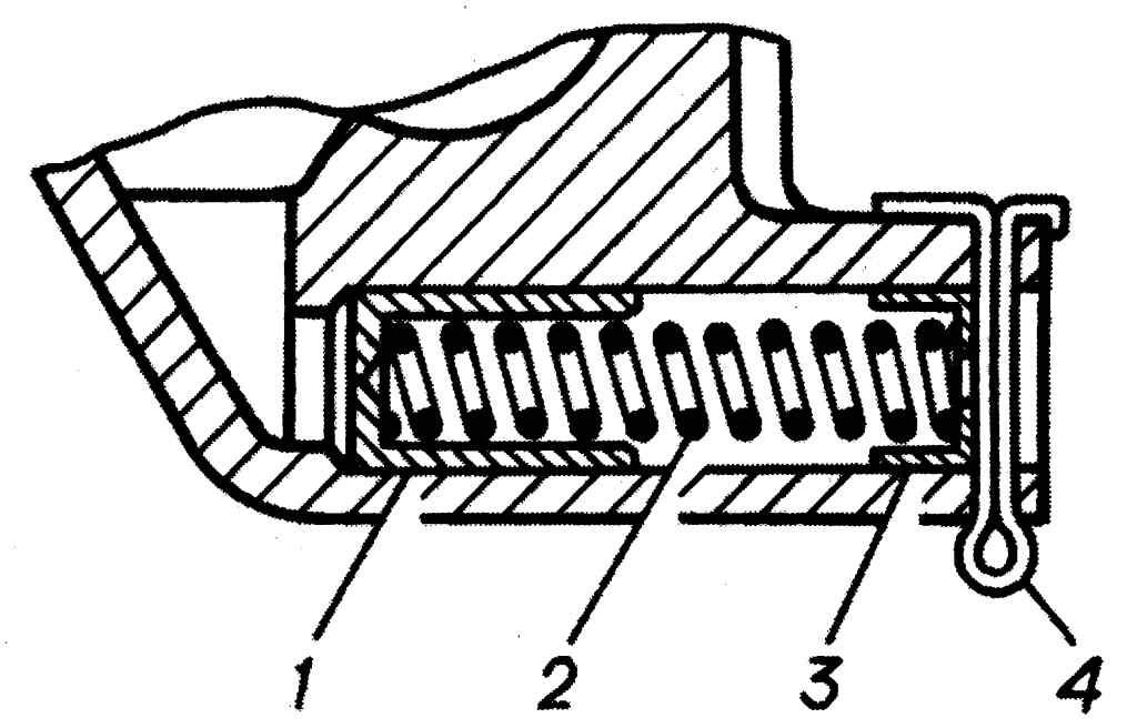 | 1. Винитовая пробка, SW22 2. Пружина сжатия 3. Направляющий палец 4. Поршень |