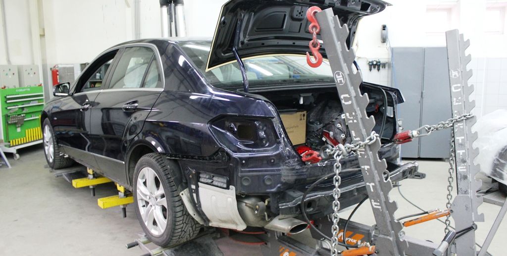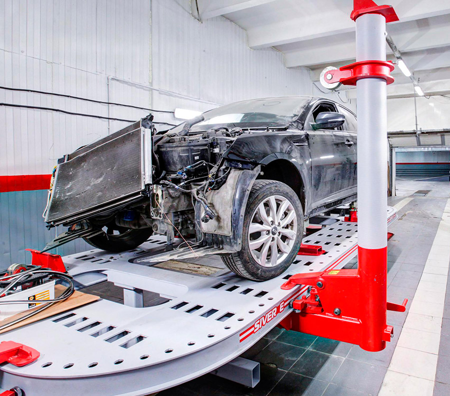 Ремонтом занимаются специализированные кузовные СТО. Машину разбирают, чтобы добраться до силовой структуры. Мастер проводит замеры по контрольным точкам, чтобы определить степень деформации с точностью до миллиметра.