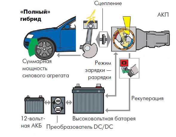 Инженеры разных компаний по-разному подходят к вопросу гибридного двигателестроения. Современные машины оснащаются гибридными двигателями, построенными по одной из трех схем взаимодействия топливной и электрической составляющей, которые будут рассмотрены ниже.