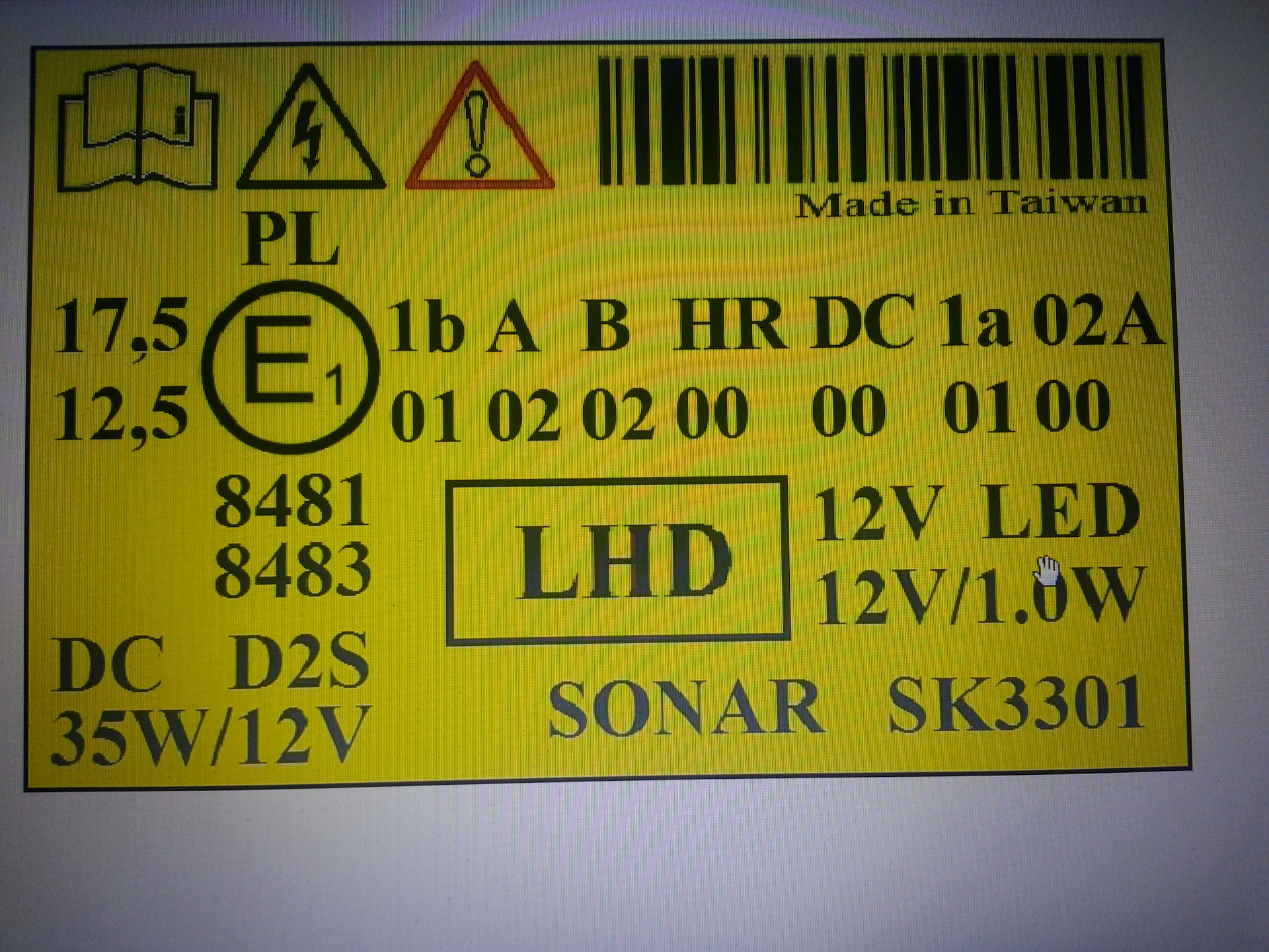 Фара официально утверждена в Нидерландах (Е4), предназначенная под биксенон или дальний и ближний ксенон, имеет номер официального утверждения 2439 и предназначена только для правостороннего движения. Число 30 означает максимальную длину луча дальнего света – от 86 до 250 м.