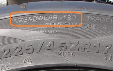Treadwear относительный ожидаемый километраж пробега по сравнению со специальным стандартным тестом США.
