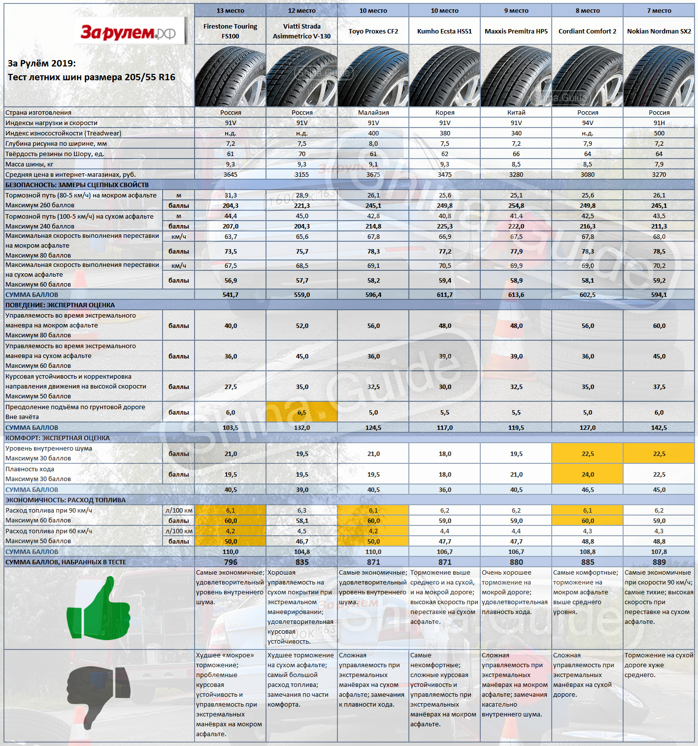 Допустим мы подбираем шины для Toyota Camry 2009 года выпуска, седан (XV40, 2.4). По тех паспорту вес автомобиля 1540 кг. Заводской размер шин 215/60 R16. В списке шин на сайте мы видим шины с индексами нагрузки 95-99, т.е. одна шина выдерживает 690-775 кг, значит 4 шины выдерживают нагрузку 2760 — 3100 кг. С такими шинами мы легко можем в машину посадить 5 человек и еще запас для груза останется.