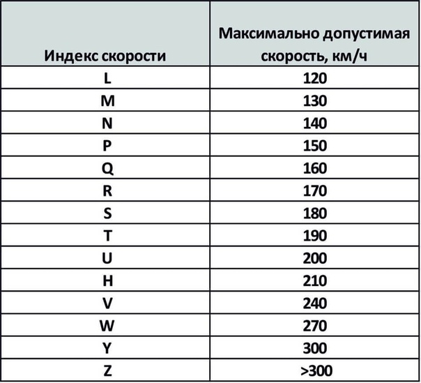Данный параметр указывается на шинах латинской литерой, рядом с показателем предельно допустимой нагрузки.