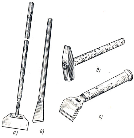 К числу самых популярных инструментов рассматриваемого профиля относят молоток и зубило, которые используются для удаления углов и бугров, которые часто появляются, в особенности, на только что залитом бетонном полу.