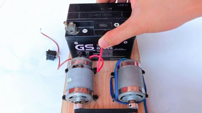 Когда сборка инвертора завершена, то можно приступать к его тестированию. Устройство подключают к аккумулятору, для начала подойдет батарея с напряжением 12 В от бесперебойника.