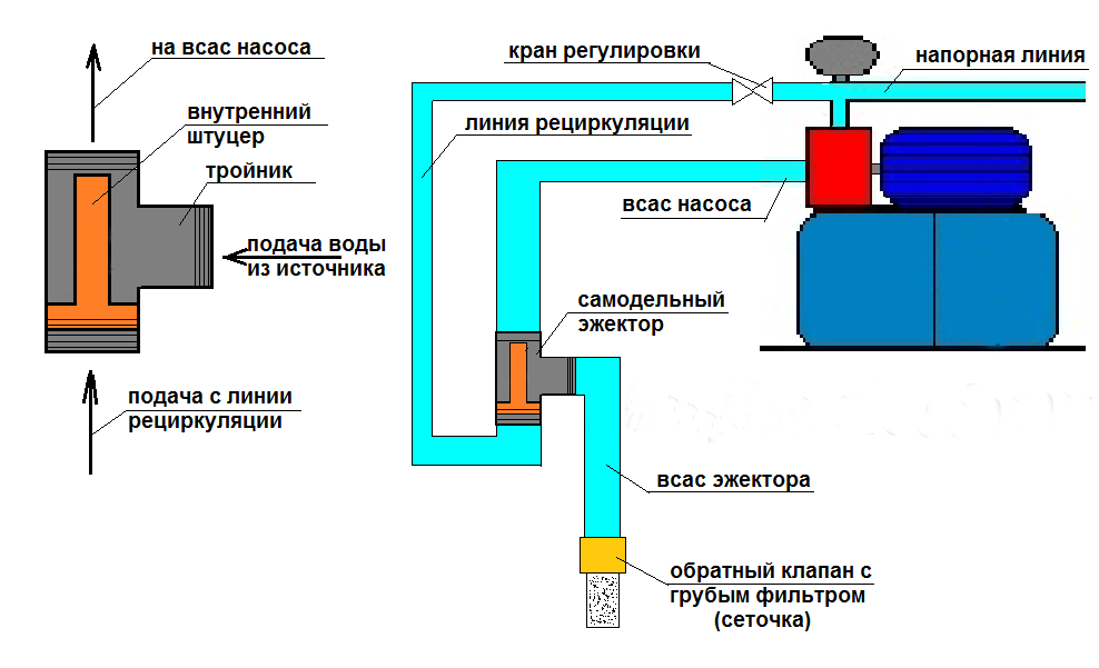 Как сделать эжектор и подключить его к насосу? Для этой цели вам необходимо подготовить следующие комплектующие: