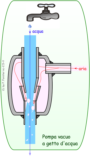 Если правильно подобрать форму трубы и скорость потока, то в отвод, расположенный в суженной части, будет засасываться воздух или жидкость