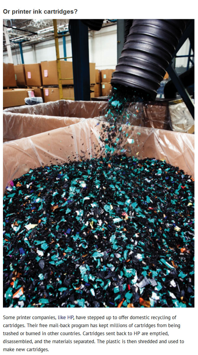 Другие компании изобретают новые способы повторного использования пластика. Одна компания разработала сотовый телефон из переработанного пластика, а другая создала садовый компостер из 100% переработанного пластика. Другая компания специализируется на изготовлении нестандартных вывесок из переработанного пластика.