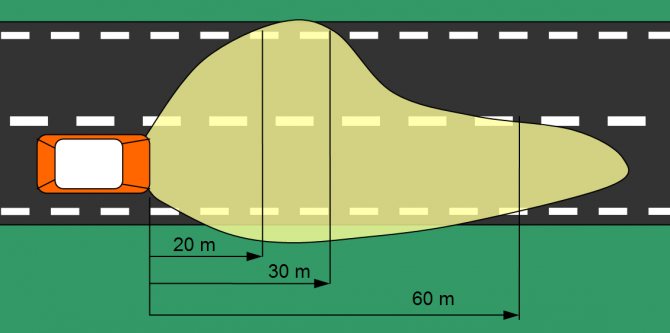 - Максимальная часть света должна освещать полосу движения на расстоянии не менее 60 метров.