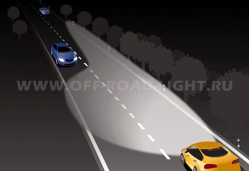 Это примерно в два раза больше расстояния, необходимого для обычных фар, потому что дальний свет рекомендуется при быстрой езде.