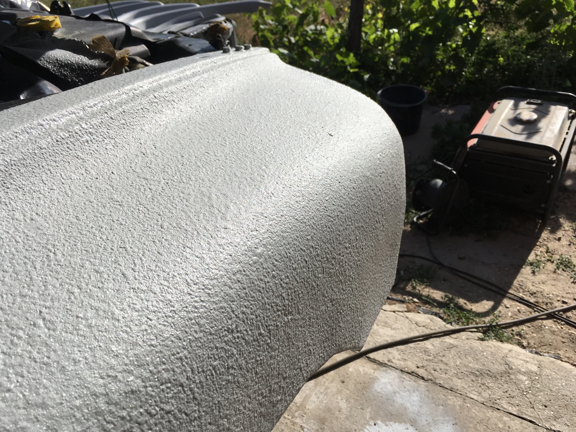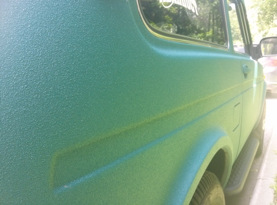Густая консистенция Raptor скроет такие микронеровности. При этом она будет надежнее держаться на таком кузове, заполняя канавки. В проблемных местах стоит применять скотч-брайт красного цвета, чтобы в полной мере избавиться от областей с глянцем.