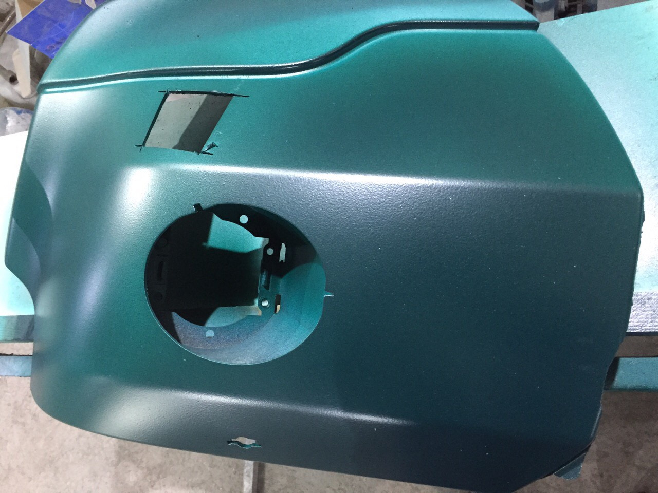 Используйте красный скотч-брайт для труднодоступных мест. Не должно оставаться областей с глянцем. Вся поверхность должна быть матовой. - Для труднодоступных мест, где невозможно качественно отшлифовать поверхность, компания U‑Pol предлагает распылять усилитель адгезии GRIP#4 (UNIVERSAL ADHESION PROMOTER). Он также может применяться на «голом» пластике для улучшения адгезии (прилипания), алюминии, стеклопластике. Может распыляться прямо на глянцевое лакокрасочное покрытие, по которому потом можно красить без шлифования.