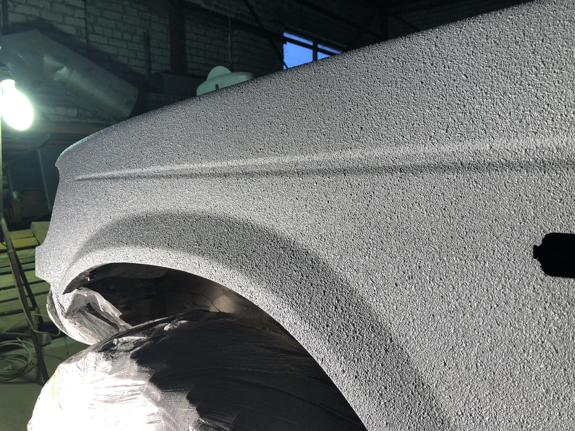 В результате обработки поверхность получается матовой и немного шероховатой, как апельсиновая корка. Глянец отсутствует, что не мешает внешности быть эстетичной и оригинальной. После проведенных работ машины не подвергают полировке, так как данный процесс будет лишь повреждать защиту.