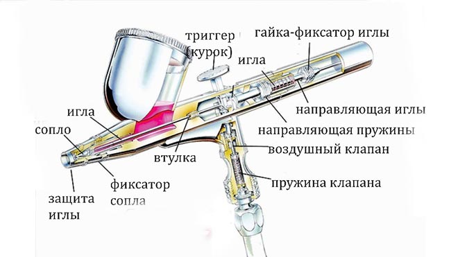 Обычно применяются недорогие аэрографы с тонким соплом и иглой. С таким устройством смогут работать даже новички. Но те, кто хотят заняться аэрографией на профессиональном уровне, должны при выборе учитывать следующие моменты: