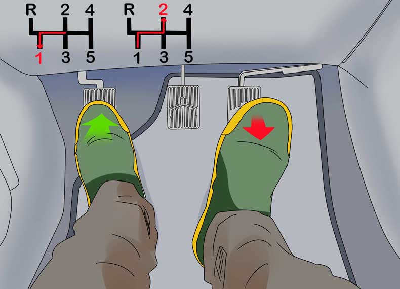 - Отпустить сцепление, нажать на газ и переключиться на следующую скорость.
