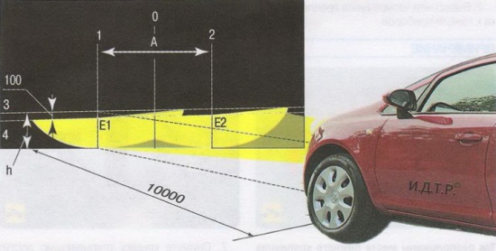 - Сперва нужно измерить расстояние, в пределах которого автокорректором осуществляется регулировка света фар.