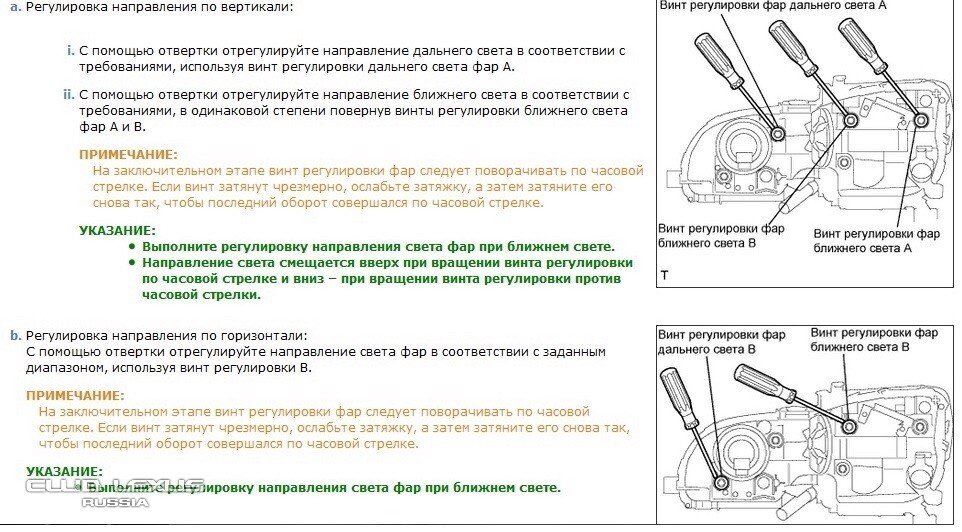 Вот инструкции по регулировке угла, делайте это только в том случае, если знаете, что делаете. Неправильно отрегулированная фара может быть опасной: