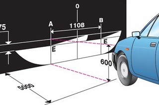 - Следующим шагом станет разметка стены или щита. Для этого автомобиль нужно установить в пяти метрах от конструкции таким образом, что фары светили непосредственно в её центральную часть. Машина должна быть установлена строго горизонтально.