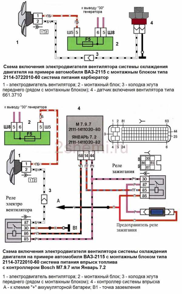 Схема включения вентилятора охлаждения двигателя на ВАЗ 2109 с монтажным блоком 2114-3722010-60
