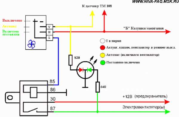 Схема вентилятора радиатора, подключение реле