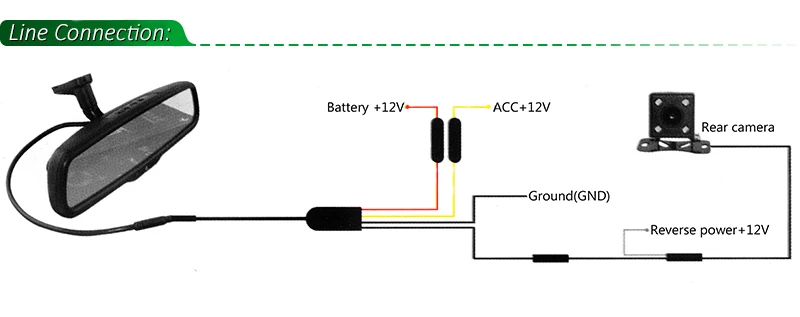 Вилка вставляется в гнездо на мониторе зеркала. Затем подключается видеосигнал путем вставки желтой вилки с камеры в гнездо на переходнике. Если на зеркале с монитором есть выход для питания камеры, то ее соответствующий коннектор вставляется в это гнездо. В противном случае питание подается отдельно от кнопки включения фонарей заднего хода. Это необходимо для того, чтобы камера была под напряжением не постоянно, а только во время движения задним ходом.