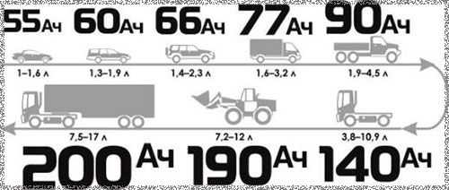 Если автомобиль будет интенсивно эксплуатироваться в полосе холодного климата, то желательно приобрести аккумуляторную батарею емкостью на 5 – 10 Ач больше рекомендуемой.