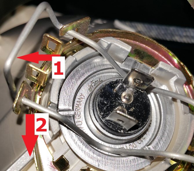 Перед тем как отсоединить этот агрегат, нужно отключить контактную колодку. После чего нужно сдавить пружину крепежа лампы и освободить сам осветительный элемент. Легким движение руки извлекаем лампу из штатного места крепления, и производим ее замену в обратном порядке.