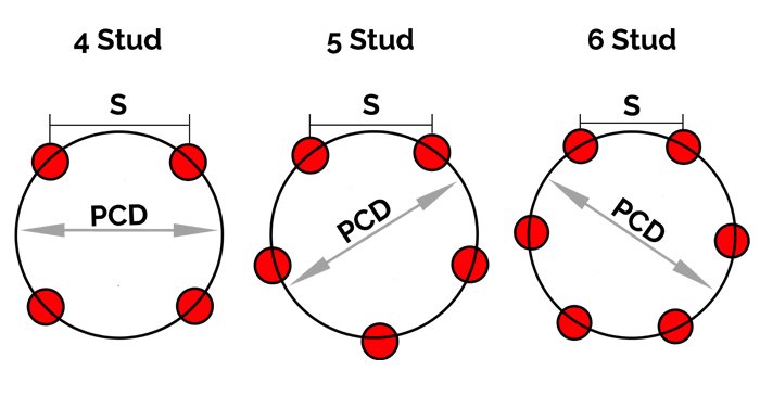 Расстояние между болтами описывается двумя значениями: количество отверстий для болтов или гаек и диаметр круга, на котором лежат центры крепежных отверстий обода. Пример: 5 × 100, что означает, что обод прикреплен пятью винтами к ступице, а отверстия лежат на окружности диаметром 100 мм.