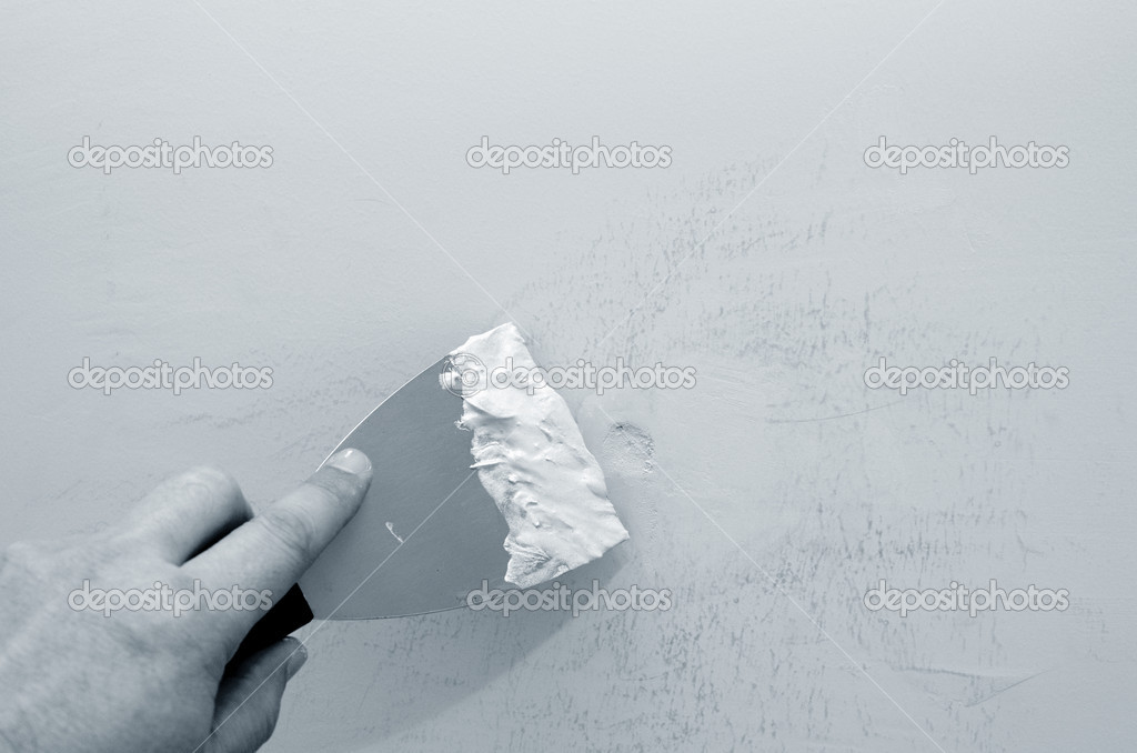 Этот способ применяется, когда необходимо локально «подлатать» поверхность стены. Выполнять шпаклевку трещин можно простым шпателем. В качестве материала можно использовать гипсовые и алебастровые смеси, но наилучшим материалом для этого вида шпаклевания служит сатенгипс. Прежде чем приступить к шпаклеванию трещин, следует увеличить ширину и глубину самой трещины. Делается это для лучшей сцепки шпаклевки. Для этого проводим острым углом шпателя или ножом по самой трещине. Далее наносим грунтовку глубокого проникновения и даем ей высохнуть. Теперь наносим саму шпаклевку при помощи шпателя и даем высохнуть.