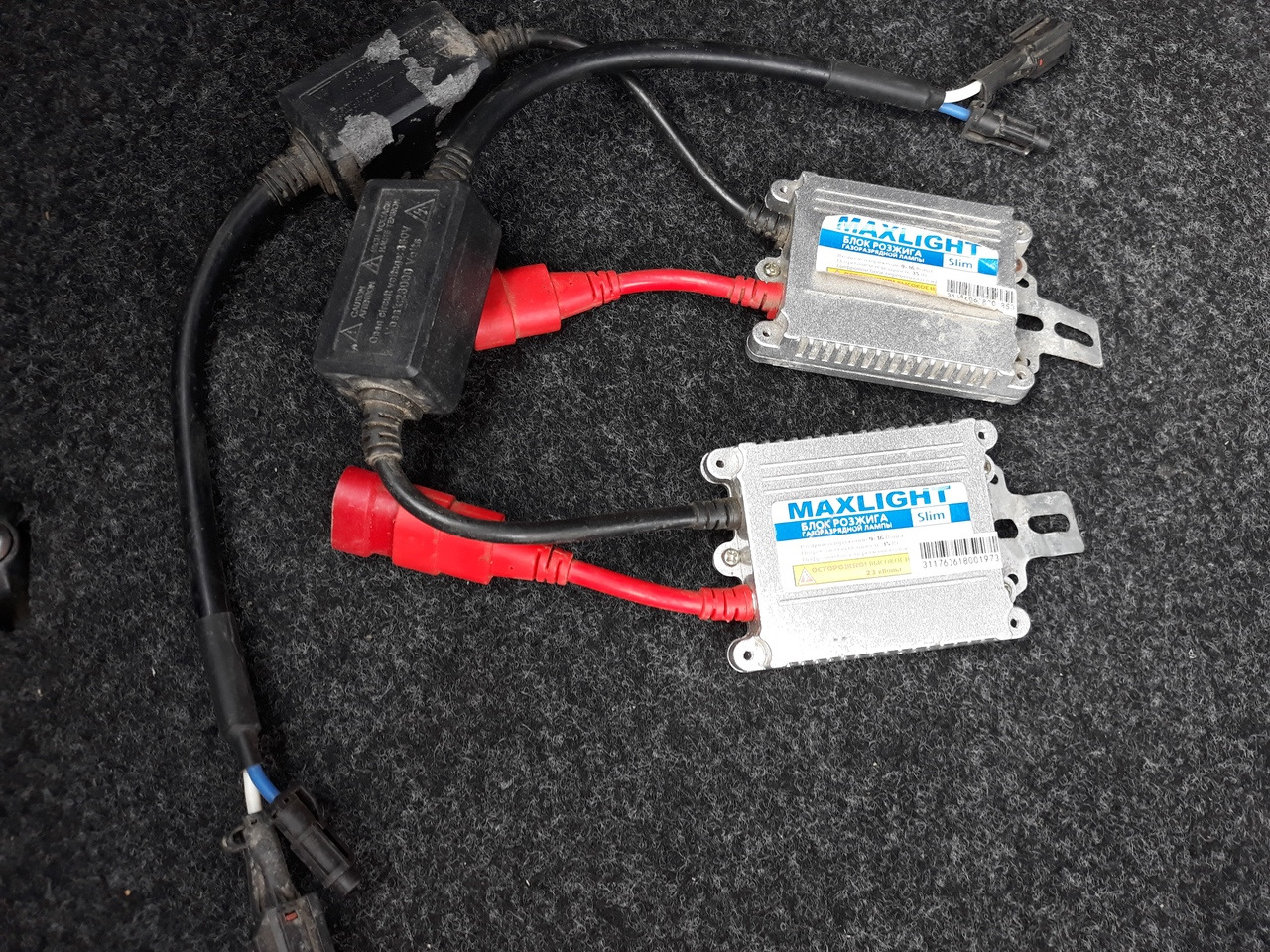 - подключение разъемов от блока к лампам, «минус» и «плюс» запитываются от стандартного разъема.