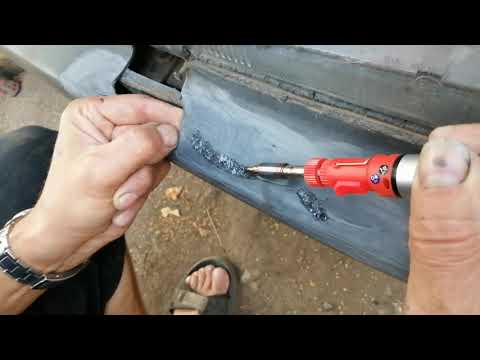 Предлагаем посмотреть видео про ремонт пробоины в бензобаке: